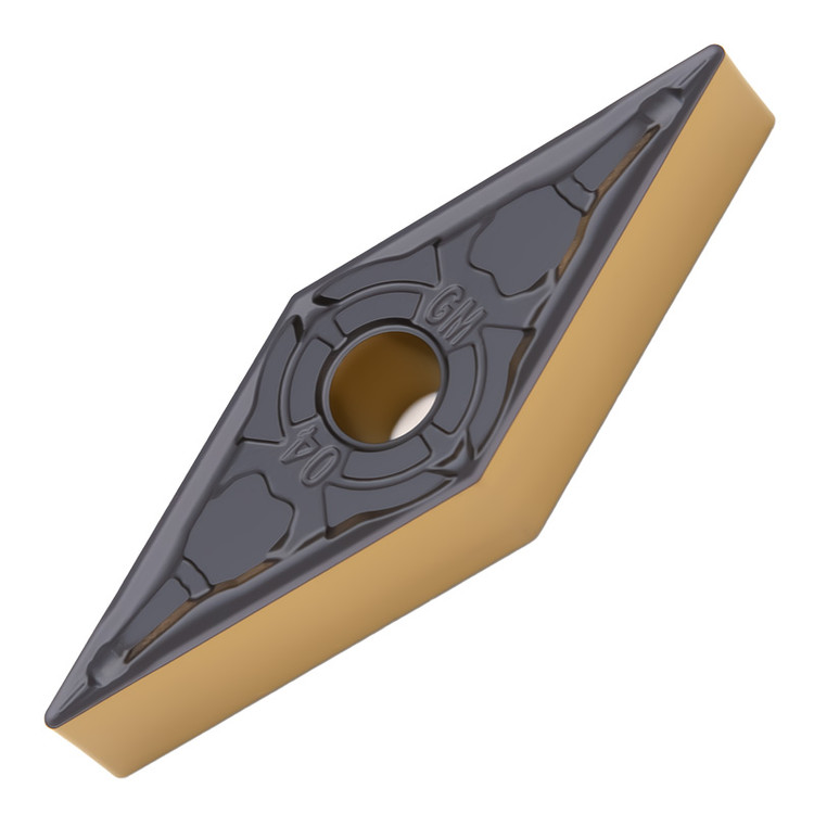 - سایزها: رایجترین سایزها شامل VNMG 110404، VNMG 160404، VNMG 160408 (عدد اول طول ضلع به میلیمتر، عدد دوم ضخامت، عدد سوم شعاع گوشه).